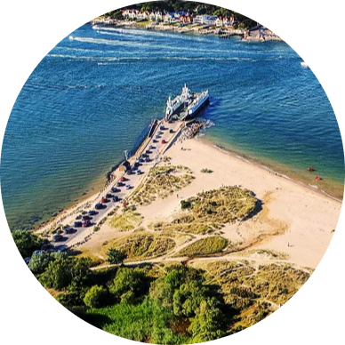 The Sandbanks Chain Ferry runs regularly between Sandbanks and Studland.